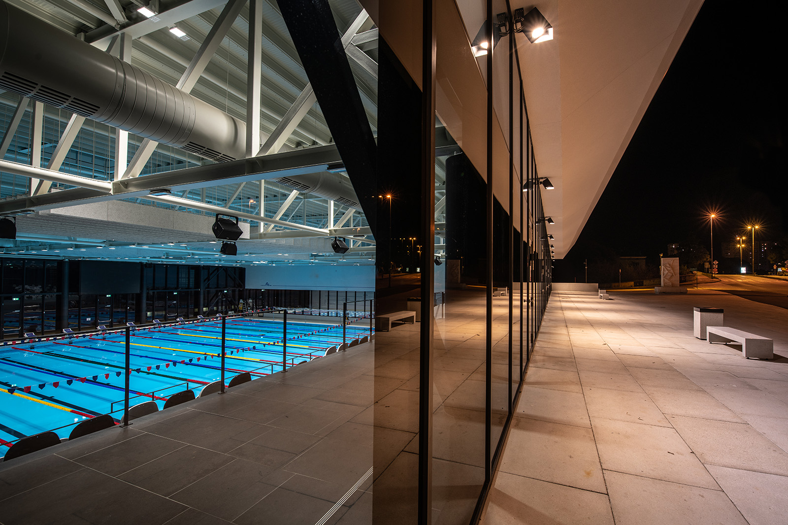 U sklopu ulaznog hola nalazi se i ugostiteljski sadržaj koji ima svoju terasu prema trgu. Bazenska dvorana ima također vanjsku terasu prema stadionu i podijeljena je u dva dijela.