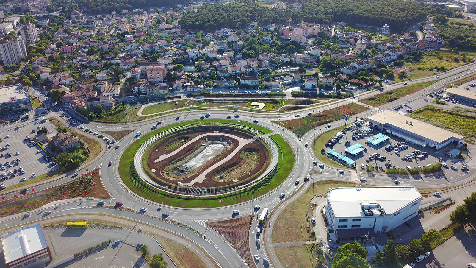 Konceptom uređenja kružnog toka, površine 15.000m2, valorizira se integralni pristup kojim se riješavanje oborinske odvodnje, hortikulturno uređenje, arhitektonsko rješenje te rješavanje dekorativne rasvjete unutarnjih površina raskrižja sagledavaju kao dijelovi cijeline. Na taj način se najproblematičniji aspekti lokacije kao što su oborinska odvodnja, problem održavanja, vizualnog zagađenja u okolnom prostoru, problem identiteta i održivost sustava koriste kao glavni pokretači projekta i osnova za njegov koncept.