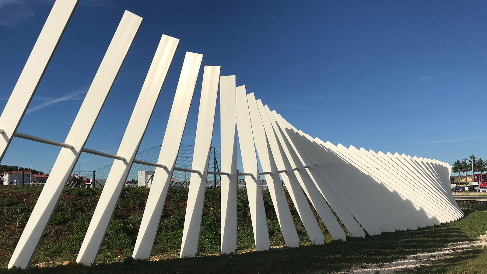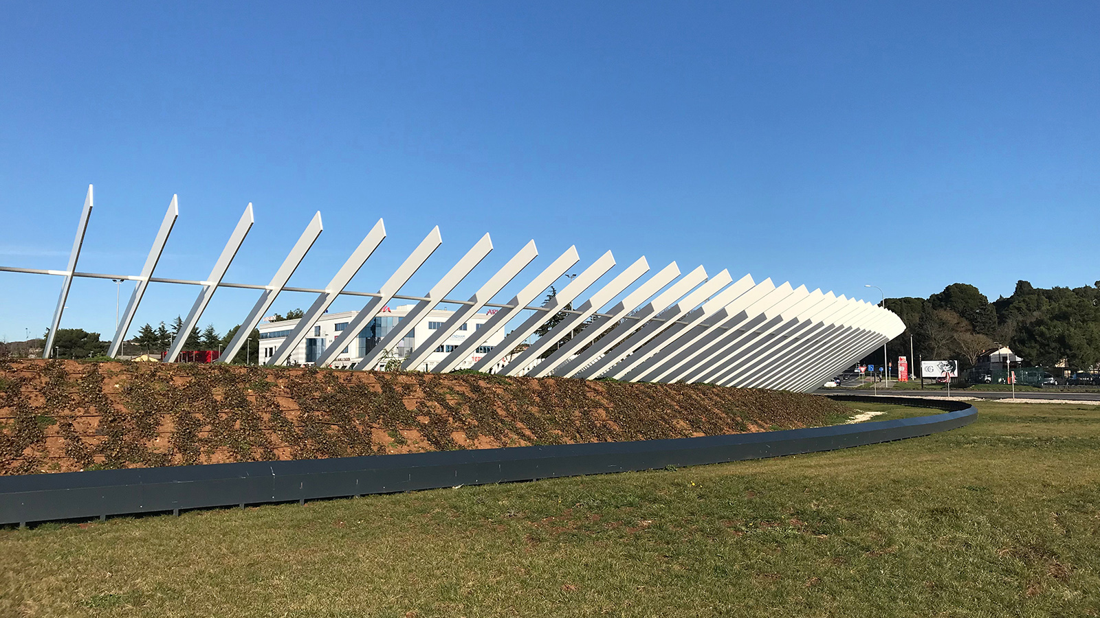 Ta tri elementa su: nasip, prsten od 340 čeličnih štapova, te sustav vodene maglice sa rasvjetom. Sva ta tri elementa su također u suglasju i zajedno tvore jednu prostornu zavjesu koja kontinuirano prati liniju kružnog toka i mjenja vizuru promatrača koji se kreće prema kružnom toku, ali i duž njega. Ta se vizura konstantno mijenja obzirom da je nasip postavljen u nagibu tako da i čelični štapovi koji su postavljeni po njegovom perimetru a pritom mijenjajući konstantno svoj nagib također utječu na takvu vrlo dinamičnu, a opet «mekanu» formu koja se neprestano mijenja duž cijelog kružnog toka, te omogućava nesmetano odvijanje prometa.