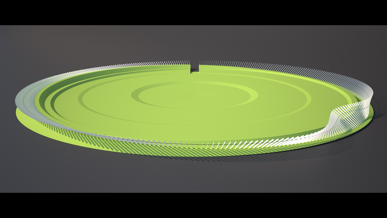 Programirani rasvjetni sustav osvjetljava vodenu maglicu, štapove i zelenu površinu nasipa. Osvjetljena vodena maglica koja se pojavljuje u noćnim satima iz prstena štapova pojačava čitanje autonomne forme sveobuhvatnog sustava, njegov identitet i prepoznatljivost, te stvara osjećaj jedne efemerne vodene strukture koja dematerijalizira cijeli prsten. Nasip je prekinut samo u sjevernom dijelu gdje je smješten ulaz/izlaz servisne ceste za održavanje unutrašnje centralne retencije i kišnog vrta koji su ujedno i treći funkcionalni prsten predloženog rješenja.